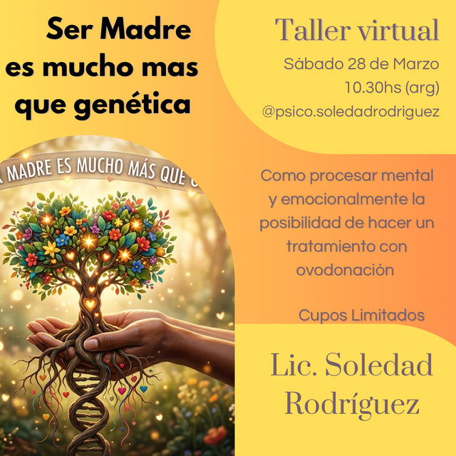 En este taller, te invito a un encuentro íntimo y honesto para hablar sin filtros sobre el duelo genético, el miedo al "qué dirán" y la inmensa belleza de la maternidad gestada desde el amor.